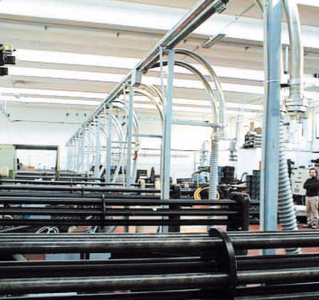 É um sistema simples mas extremamente potente que permite transferir limalha curta e seca, de um ponto a outro da fábrica com somente a ocupação dum tubo de 3”.