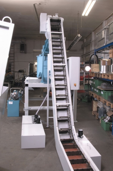 A aplicação do equipamento elimina todos os problemas relativos à movimentação da limalha: o emprego constante dum empilhador ou manuseamento do operador, o risco de choque durante o transporte, o emprego de pessoal para limpeza da limalha disperso e do óleo, a ocupação de caixas (cheias e vazias) na fábrica.
