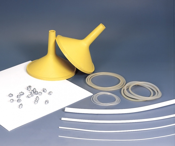 Dispomos de materiais de consumo como borrachas silicone, perfis e telas de silicone e teflon, centradores, porta-moldes, funis de silicone, ligas de zinco (zamak) e estanho, talco desmoldante em pó ou em líquido, massas e óleos lubrificantes.