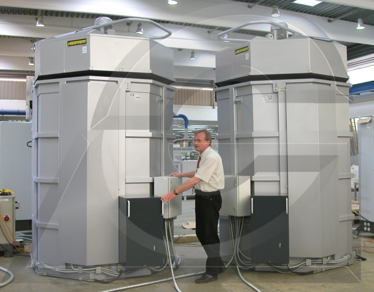 Fornos, caixas de absorção de gás, sistemas de endurecimento, banhos de resfriamento brusco, placas de carga, alicates, luvas, cestas de carregamento, demais acessórios.