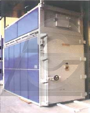 A camara, construída em aço FE37 de 4mm de espessura, inteiramente soldada para permanecer estanque ao exterior, é isolada com um estrato de lã de rocha de alta densidade (150 kg/m³) com 50mm de espessura, e de 2 estratos de fibra cerâmica de 25mm cada uma.