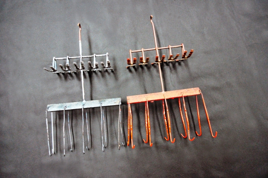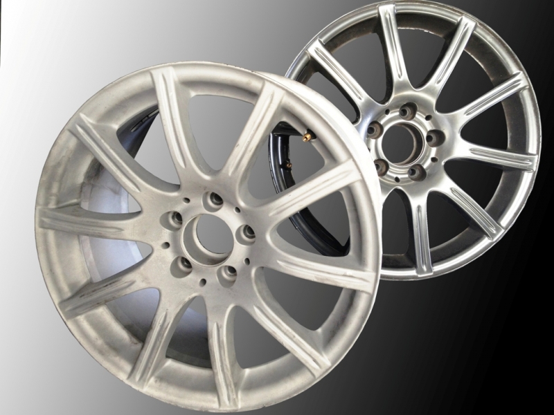 Em cima, pode-se apreciar alguns exemplos de peças, jantes auto, bastidores, racks e suspensões de pintura decapadas por este método: