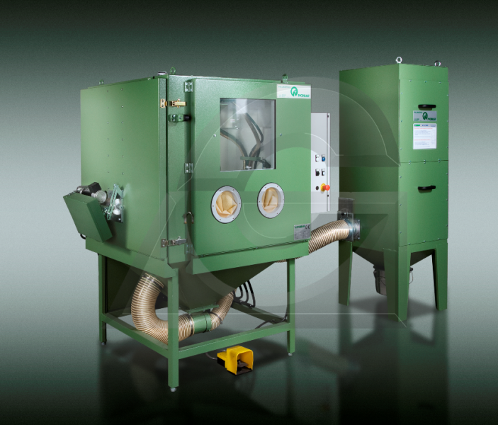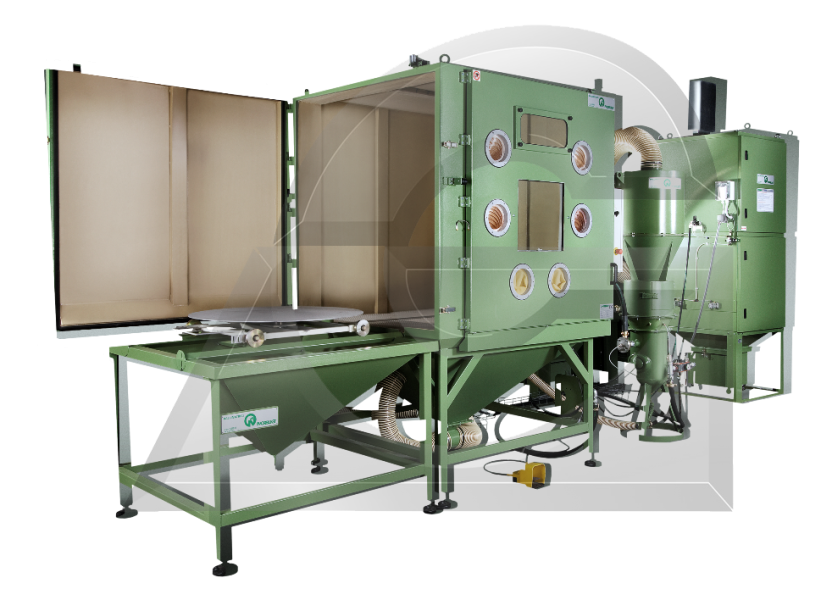 Estas máquinas de projeção ou jateamento de granalhas, estão dotadas dum sistema de disparo em depressão, são de fácil empregabilidade e equipadas com um grupo de seleção, separação e recuperação de alta eficiência das granalhas usadas.